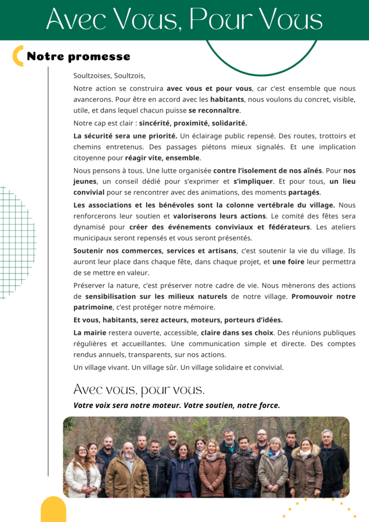 Nous organisons une réunion publique de présentation de notre liste et de notre promesse :