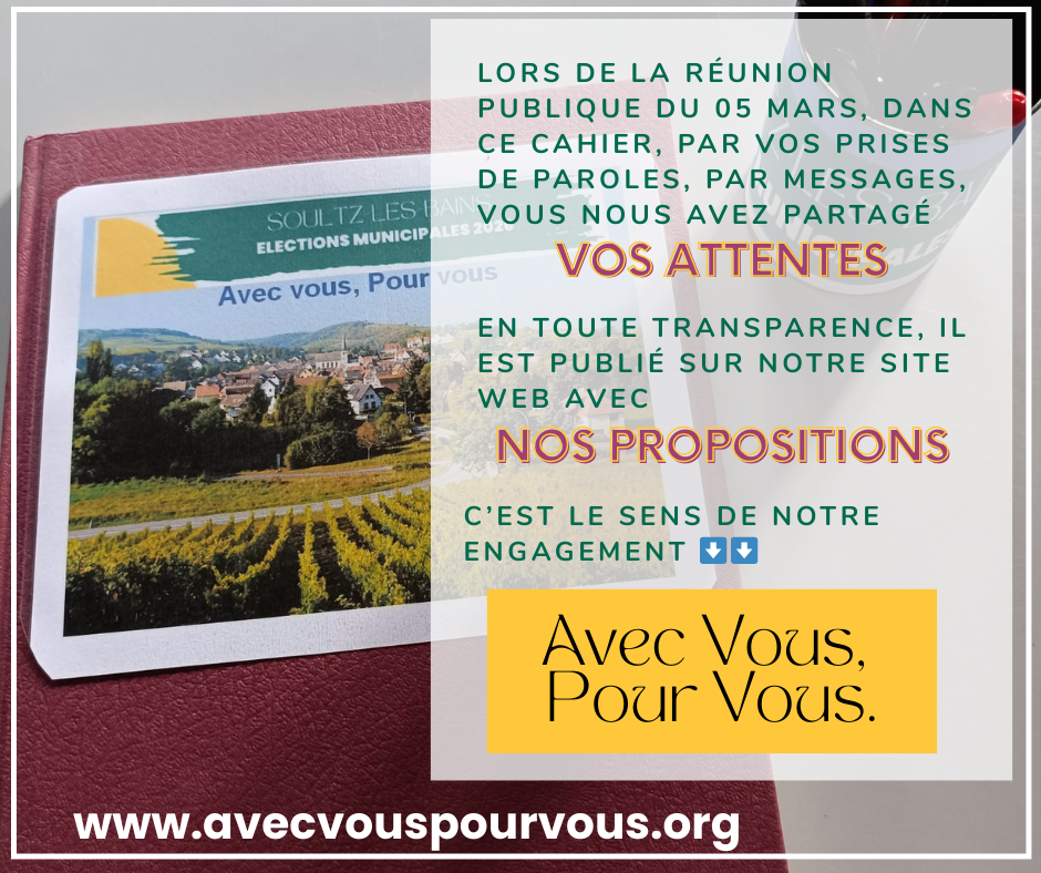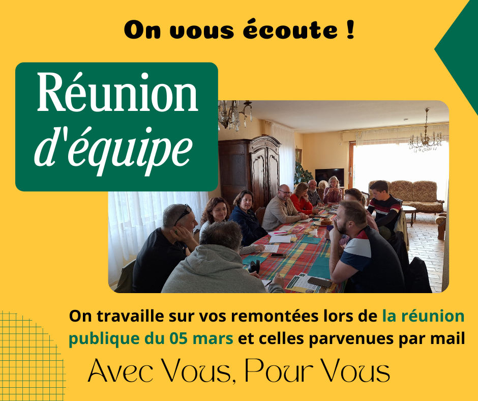 Lors de notre réunion publique du 05 mars dans un cahier, par vos prises de paroles, par vos messages sur les réseaux, vous nous avez adressé vos attentes. Nous y avons travaillé collectivement pour vous apporter ces propositions.